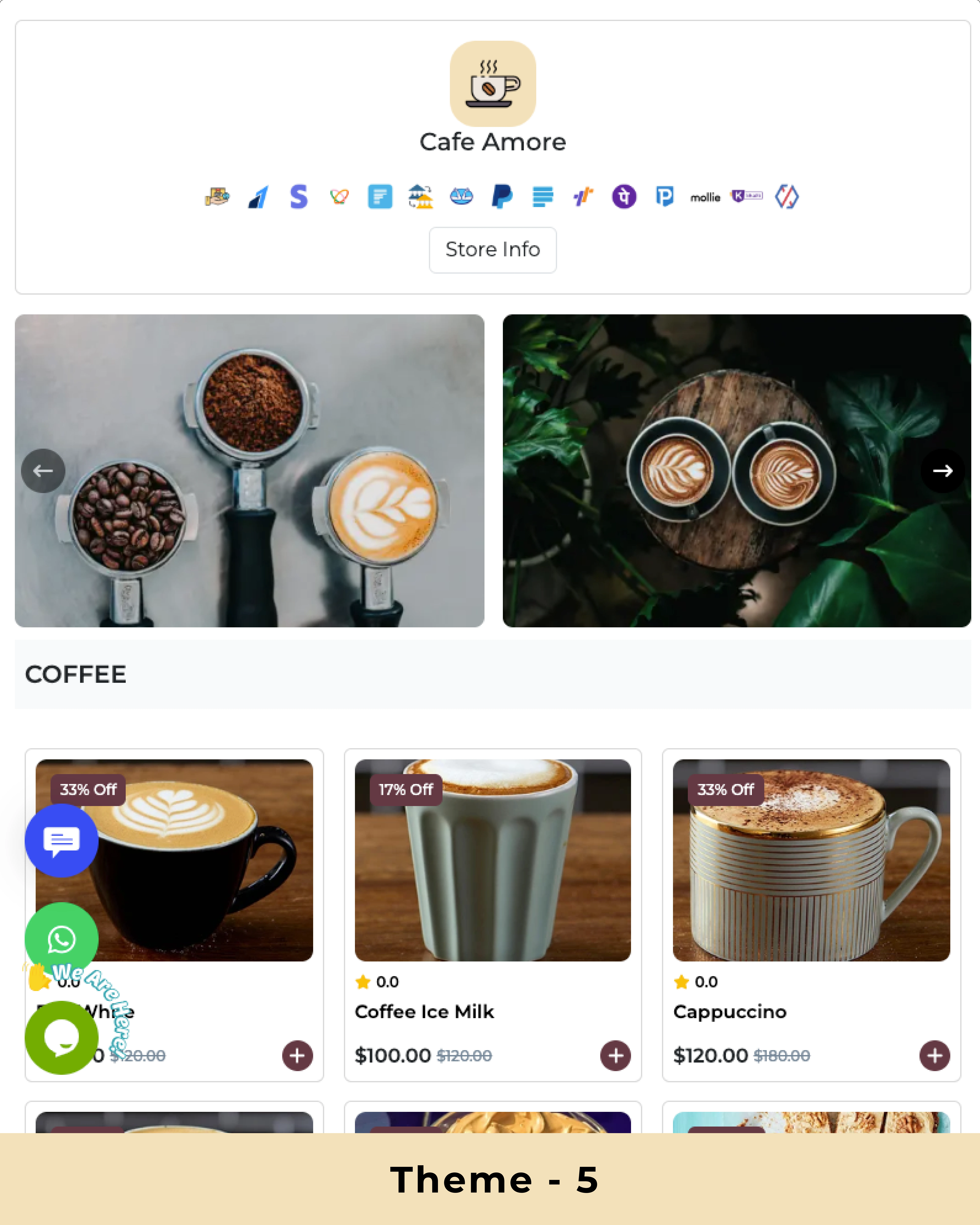 Los temas preconstruidos te ayudarán a atraer más clientes. Personaliza los colores y el diseño en vista de cuadrícula o lista.